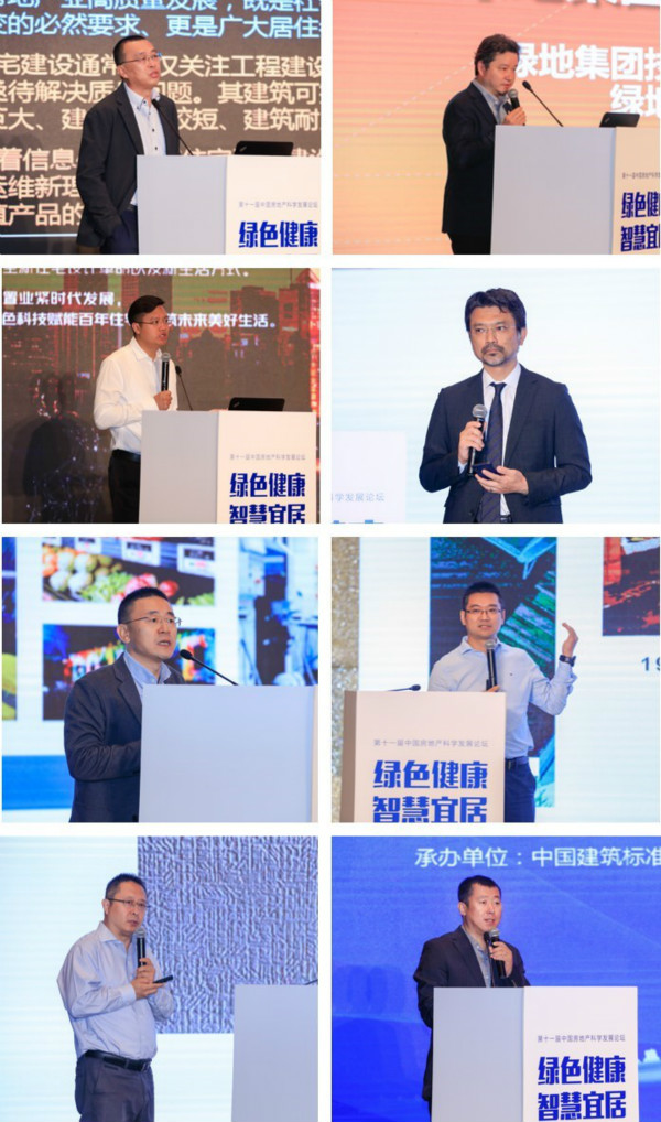 標(biāo)準(zhǔn)院總建筑師劉東衛(wèi)以《智慧住宅與綠色可持續(xù)建設(shè)的房地產(chǎn)業(yè)高質(zhì)量發(fā)展》為主題首先進(jìn)行了分享。在綠色地產(chǎn)領(lǐng)域居領(lǐng)先地位的房地產(chǎn)企業(yè)也深入地介紹了各自企業(yè)的綠色技術(shù)。綠地控股集團(tuán)總建筑師、綠地控股集團(tuán)技術(shù)管理產(chǎn)品研發(fā)部總經(jīng)理戎武杰,以《高質(zhì)量發(fā)展,可持續(xù)引領(lǐng)-綠地集團(tuán)“綠健百科”體系》介紹了綠地在綠色建筑領(lǐng)域的技術(shù)實(shí)現(xiàn)與體系建造。當(dāng)代置業(yè)(中國(guó))有限公司總裁助理、北京區(qū)域公司總經(jīng)理孫帆,介紹了當(dāng)代集團(tuán)新一代住宅產(chǎn)品研發(fā)——當(dāng)代上品灣MOMΛ項(xiàng)目的技術(shù)體系與實(shí)現(xiàn)效能。上海朗綠建筑科技股份有限公司總裁陳棟梁則介紹了綠色智慧與健康生活——朗綠綠色人居產(chǎn)品解決方案。全方位的介紹、新技術(shù)的引用,以及積極的效果引發(fā)聽眾廣泛關(guān)注。松下電氣機(jī)器(北京)有限公司副總經(jīng)理黃忠明也從建筑配套產(chǎn)品的角度,以松下產(chǎn)品為例介紹了國(guó)際上智慧社區(qū)的發(fā)展。