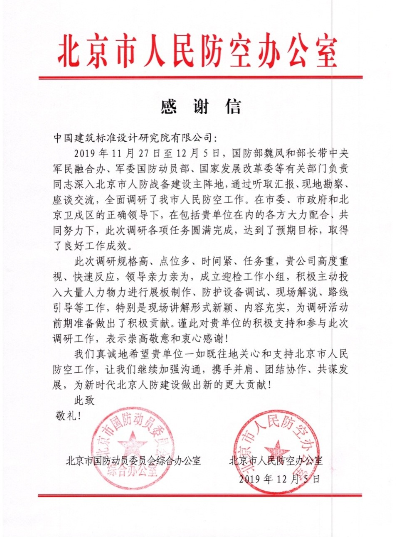特別是2019年11月份,國防部魏鳳和部長帶中央軍民融合辦、軍委國防動員部、國家發(fā)展改革委等有關(guān)部門負(fù)責(zé)同志,深入我院在建的北京地鐵16號線榆樹莊站,開展地鐵人防工程現(xiàn)場調(diào)研工作。此次調(diào)研規(guī)格高、點(diǎn)位多、時(shí)間緊、任務(wù)重,地下二院高度重視,反應(yīng)迅速,積極配合北京市人防辦及相關(guān)單位,對迎檢工作進(jìn)行了精心和充分準(zhǔn)備,對整個(gè)調(diào)研活動進(jìn)行了細(xì)致策劃,積極主動投入大量人力物力進(jìn)行展板制作、防護(hù)設(shè)備調(diào)式、現(xiàn)場解說、路線引導(dǎo)等工作。地下二院全體員工團(tuán)結(jié)一致,發(fā)揚(yáng)敢打敢拼精神,非常圓滿地完成了本次迎檢工作,北京市國動委聯(lián)合北京市防辦特發(fā)來感謝信,表達(dá)對我院的感激之情和工作的高度肯定。