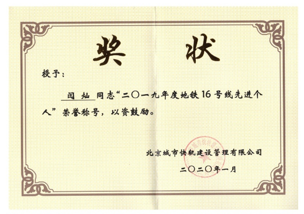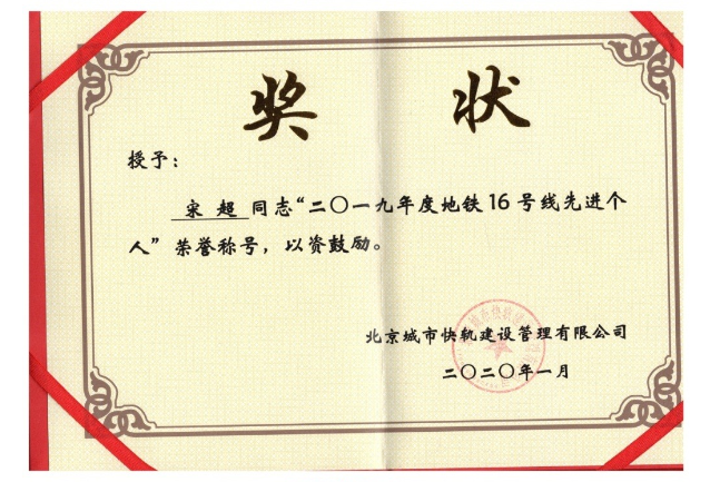 2019年度地下二院也涌現(xiàn)一批甘于奉獻(xiàn)、成績突出的優(yōu)秀員工,他們在各自的崗位上兢兢業(yè)業(yè),不畏艱辛,努力將本職工作做到極致,得到了建設(shè)單位的高度肯定,并授予先進(jìn)個(gè)人榮譽(yù)稱號。
