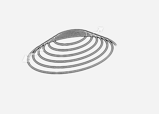 第三步,將螺旋線上部線條沿一定高度水平鏡像,生成內(nèi)外兩個橢圓的建筑輪廓線;
