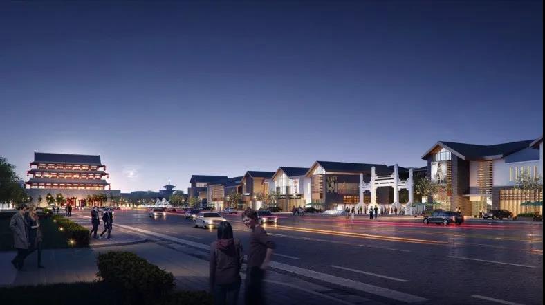 在商業(yè)區(qū)域上除繼承新城的整體建筑風格外,也做到舒適高效便于開發(fā)。整個區(qū)域充分利用城市干道進行商業(yè)及辦公業(yè)態(tài)規(guī)劃布局;建筑、景觀設(shè)計在延續(xù)風格的同時,也充分考慮與現(xiàn)有環(huán)境的融合,散發(fā)自然生機;此外,在以鐘樓鼓樓沿線限高的要求下,也對天際線做出了錯落有致的傳統(tǒng)風味。