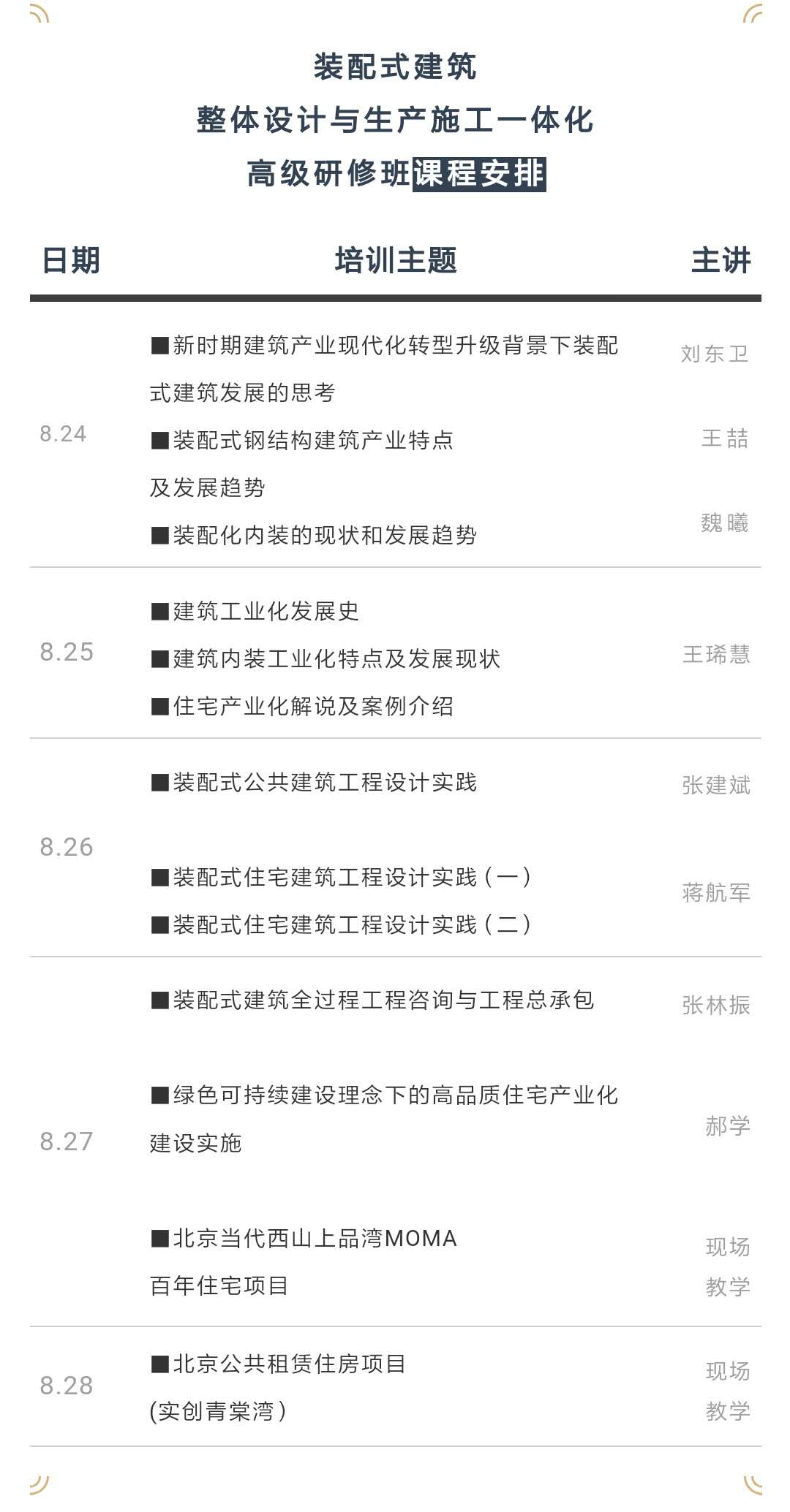 2020年8月24日-8月28日,由中國建設(shè)科技集團(tuán)申報(bào)、中國建筑標(biāo)準(zhǔn)設(shè)計(jì)研究院承辦的人社部裝配式建筑整體設(shè)計(jì)與生產(chǎn)施工一體化高級研修班在北京成功舉辦。