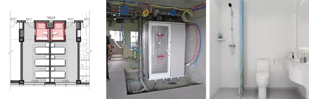 護(hù)理單元采用整體衛(wèi)浴便于施工建造,大大提高了模數(shù)精度、節(jié)約了建筑面積。