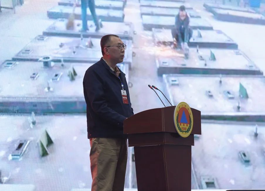 ▲“2019年度中國勘察設(shè)計(jì)協(xié)會(huì)優(yōu)秀人防工程”一等獎(jiǎng)獲得者代表標(biāo)準(zhǔn)院趙貴華發(fā)表演講