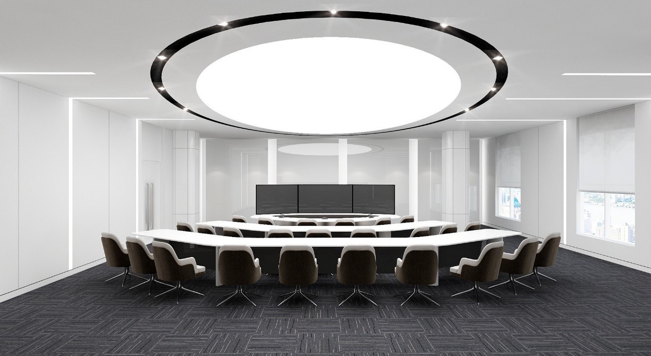 本會議室改造設計項目基于“以人為本、低碳、健康、科技”四點設計準則,創(chuàng)建功能合理,環(huán)境舒適,低碳環(huán)保于一體的智能化現(xiàn)代會議室。會議室內(nèi)部配備智能化系統(tǒng),全面提升會議室系統(tǒng)功能等級,提高會議效率,節(jié)省參會人員時間成本。本設計項目兼顧會議區(qū)室內(nèi)空間感受,運用室內(nèi)色彩、材質(zhì)、造型等裝飾語言,營造簡潔、穩(wěn)重大氣的室內(nèi)設計風格。本項目的成功中標為標準院拓展了既有辦公建筑改造領域的市場,為下一步承接辦公建筑改造施工項目夯實了良好基礎。