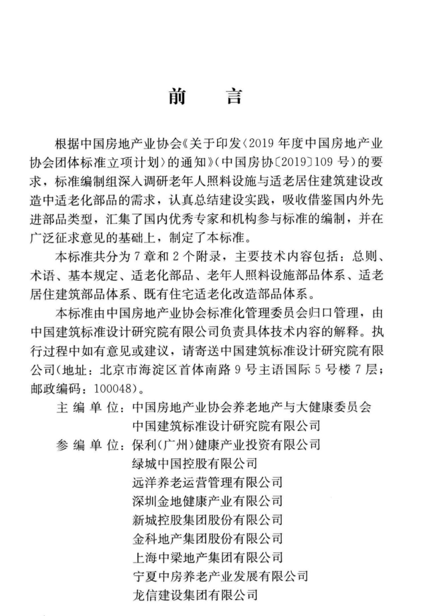 為積極應(yīng)對(duì)人口老齡化,建立健全與十四五規(guī)劃和2035年遠(yuǎn)景目標(biāo)綱要提出的“支撐家庭承擔(dān)養(yǎng)老功能,構(gòu)建居家社區(qū)機(jī)構(gòu)相協(xié)調(diào)、醫(yī)養(yǎng)康養(yǎng)相結(jié)合的養(yǎng)老服務(wù)體系”相適應(yīng)的適老部品體系,針對(duì)當(dāng)前適老部品體系缺失,適老部品質(zhì)量參差不齊,智能化、精細(xì)化程度不夠等實(shí)際問(wèn)題,由中國(guó)建筑標(biāo)準(zhǔn)設(shè)計(jì)研究院有限公司劉東衛(wèi)總建筑師牽頭,聯(lián)合中國(guó)房地產(chǎn)業(yè)協(xié)會(huì)、保利、綠城、遠(yuǎn)洋、金地、新城、金科、中梁、寧夏中房、龍信、德源、陽(yáng)光城等企業(yè),在廣泛項(xiàng)目調(diào)研和成功實(shí)踐的基礎(chǔ)上,共同編制了《老年人照料設(shè)施與適老居住建筑部品體系標(biāo)準(zhǔn)》(以下簡(jiǎn)稱(chēng)“《標(biāo)準(zhǔn)》”),并于2021年9月1日發(fā)布實(shí)施。