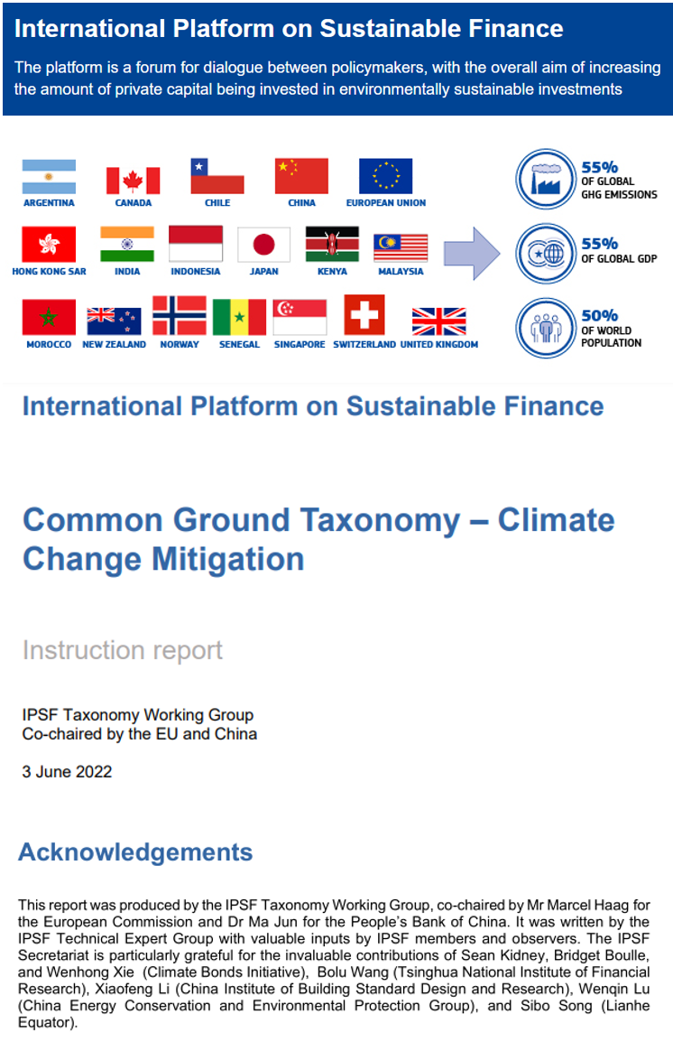 2022年6月3日,由中歐等經(jīng)濟體共同發(fā)起的可持續(xù)金融國際平臺(IPSF)在官方網(wǎng)站上發(fā)布了《可持續(xù)金融共同分類目錄》(以下簡稱“《共同分類目錄》更新版”)。
