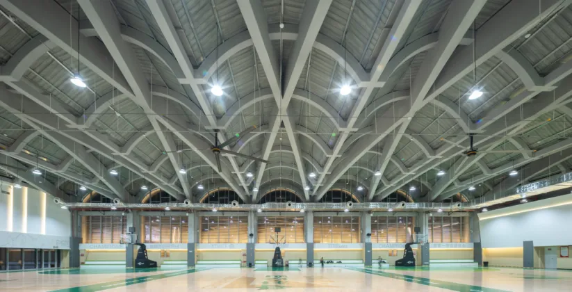 在體育建筑的設計中,專業(yè)適用的運動空間布局至關重要。針對羽毛球館、籃球館、游泳池和家庭健身中心等不同功能區(qū)域,精心設計合理的層高布置方案。通過交叉拱的結構形式,營造寬敞開闊的無柱空間,凈空高度與空間尺度的設計保證平日全民健身與部分體育賽事標準的使用要求,打造靈活實用的空間布局,滿足用戶群體的多元化需求。