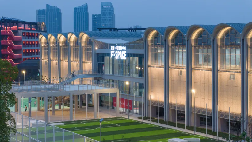 冠軍一號運動中心F-SPACE的落成,標志著城市空間創(chuàng)新利用與體育業(yè)態(tài)深度結合的新篇章。合理的規(guī)劃布局、高效的結構方案以及綠色裝配式建筑技術的應用,滿足市民多元健身需求,激活公共空間,提升生活品質(zhì),樹立起合肥園博園內(nèi)高標準、高品質(zhì)的體育服務綜合體新標桿。