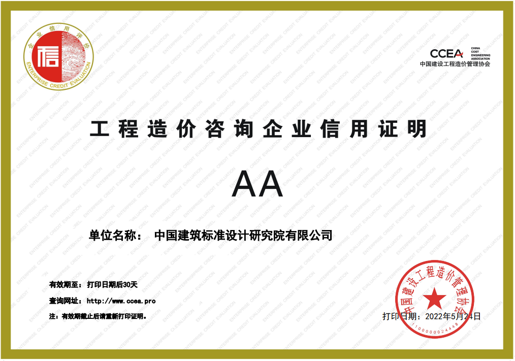 【喜訊】標準院榮獲AA級造價咨詢企業(yè)信用等級
